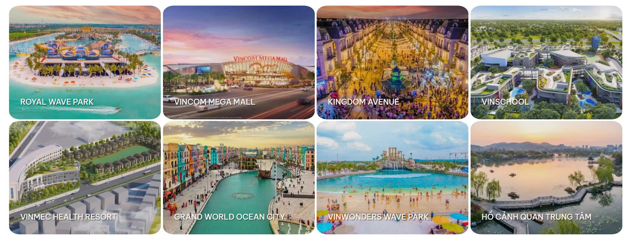 Hệ thống giáo dục Vinschool liên cấp quốc tế, VinUni, và y tế Vinmec Health Resort được đầu tư bài bản. Khu vui chơi trẻ em an toàn, công viên cây xanh ven hồ, sân thể thao ngoài trời, khu BBQ cộng đồng mang đến trải nghiệm sống đẳng cấp resort giữa lòng đô thị.